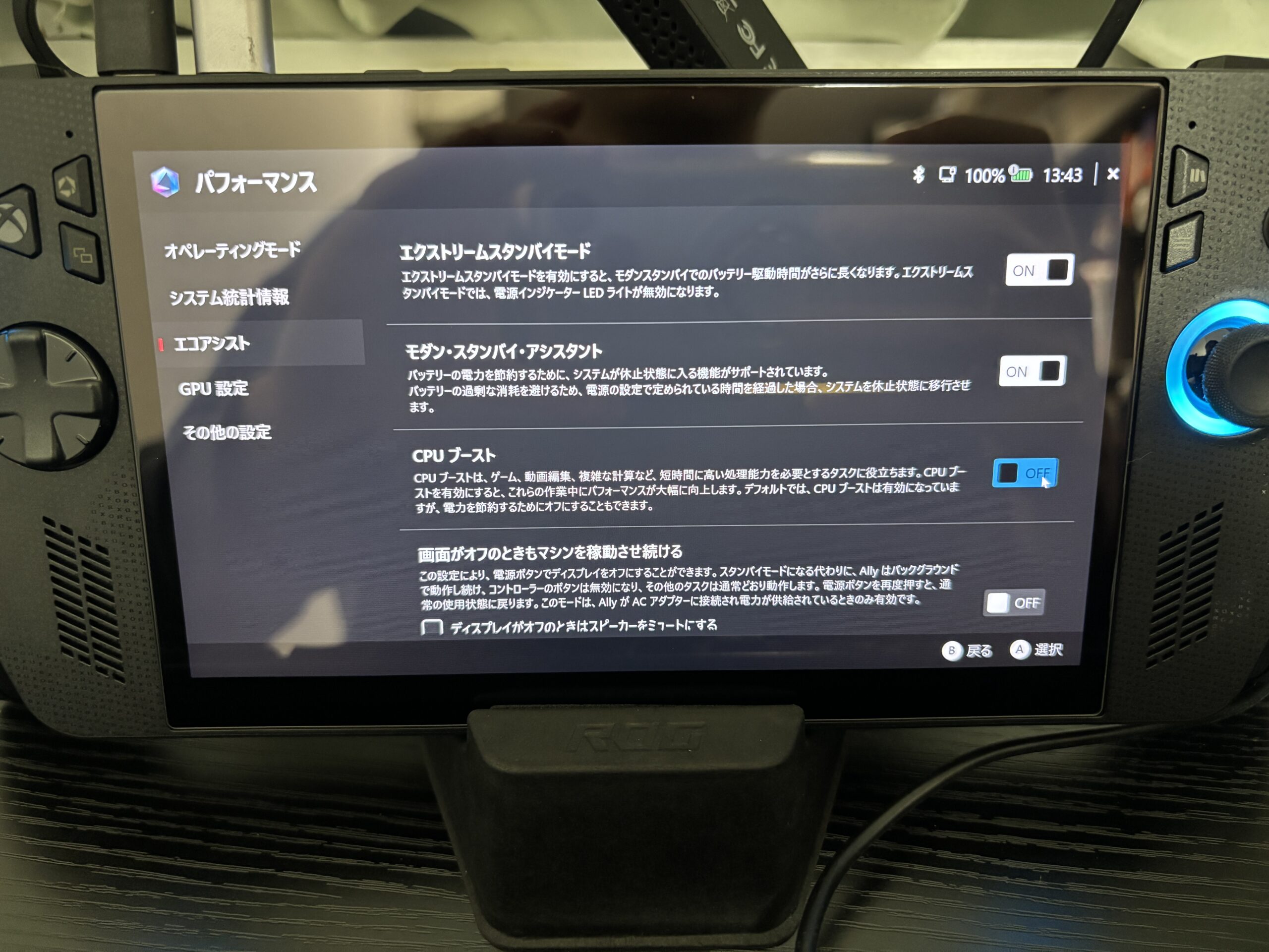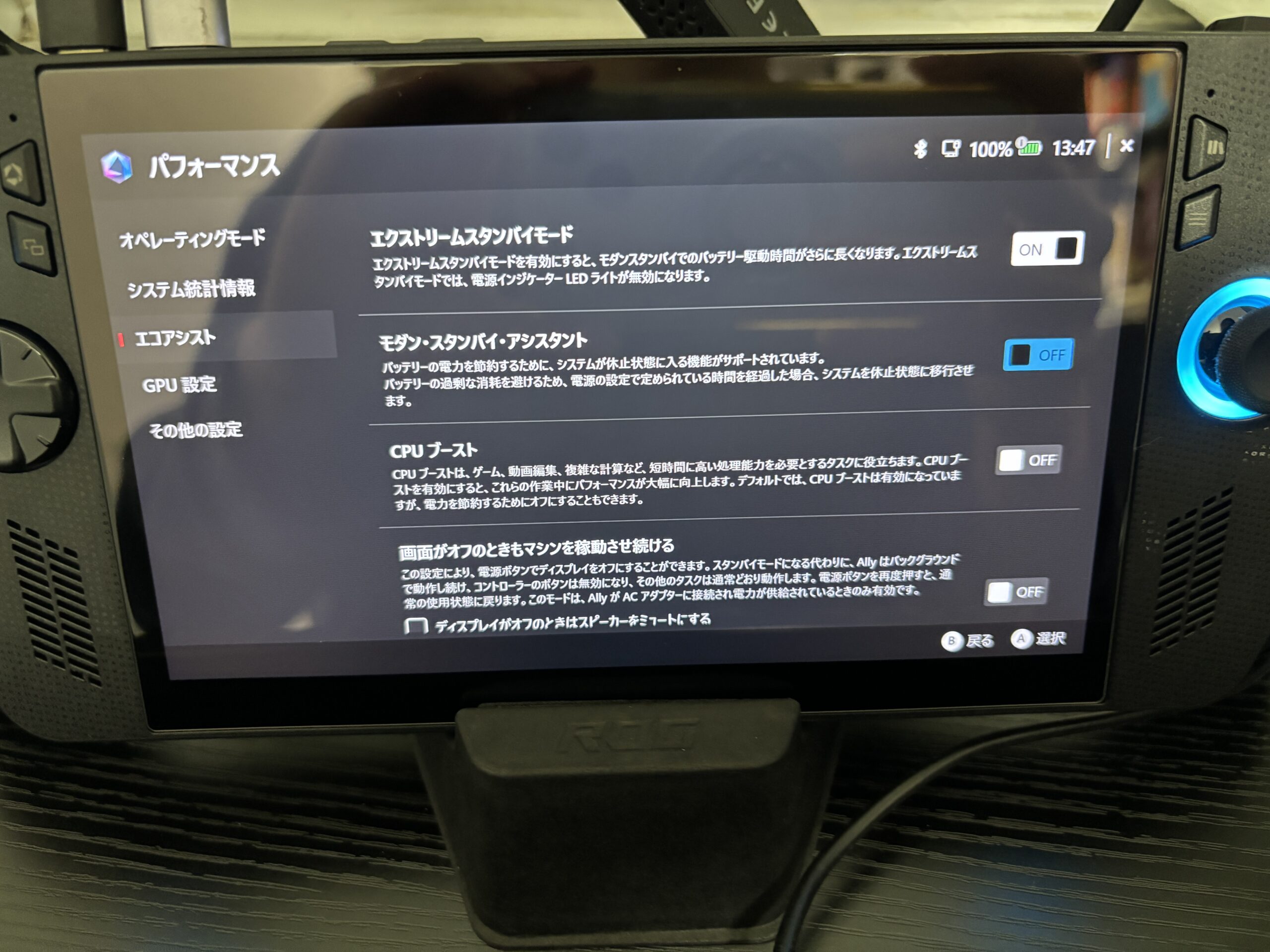 「ROG XBOX ALLX X」の初期設定で行った方が幸せになれる設定は以上です。
