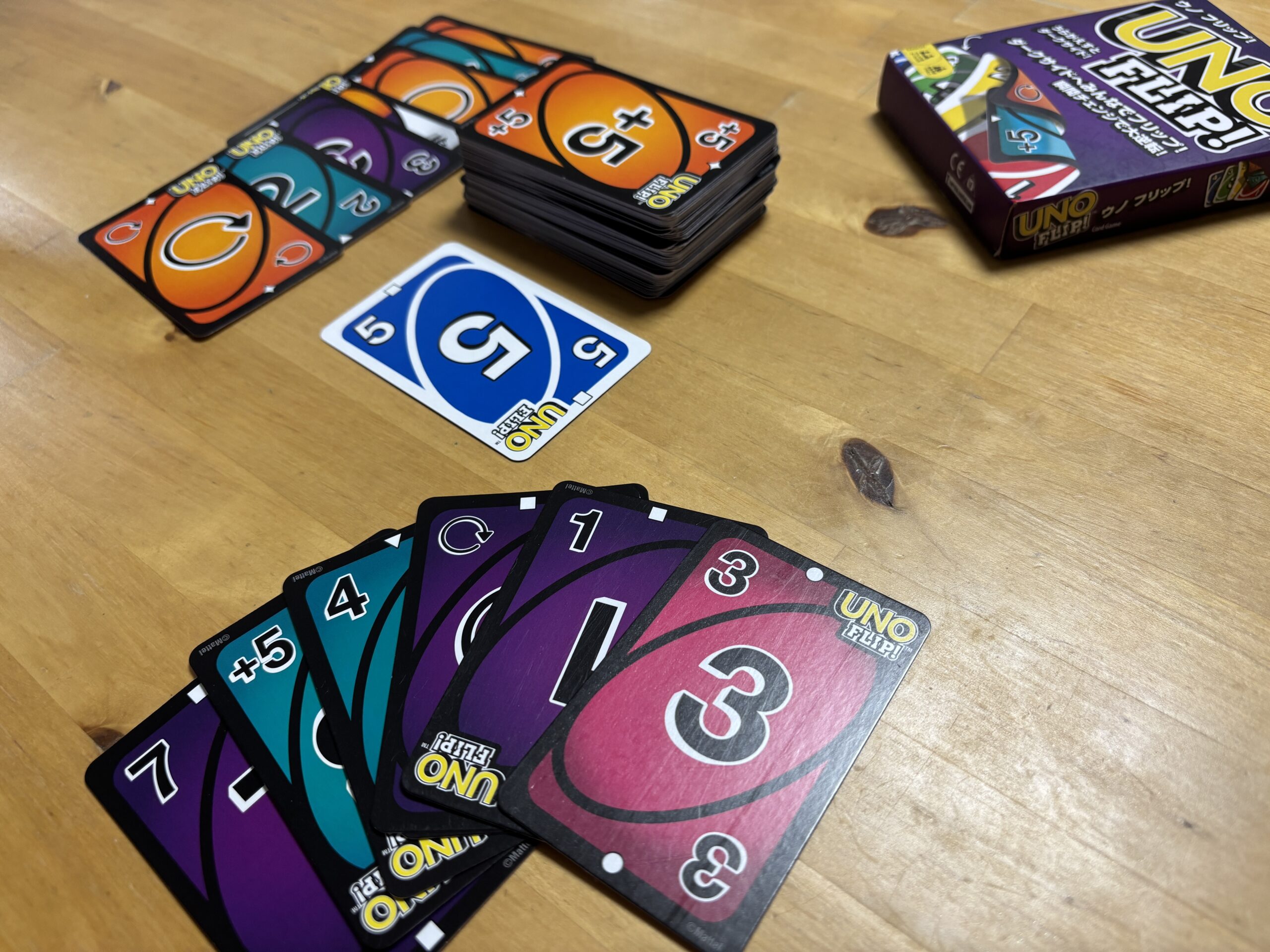 普通のUNOと違ってフリップして急に変わるのが面白い!